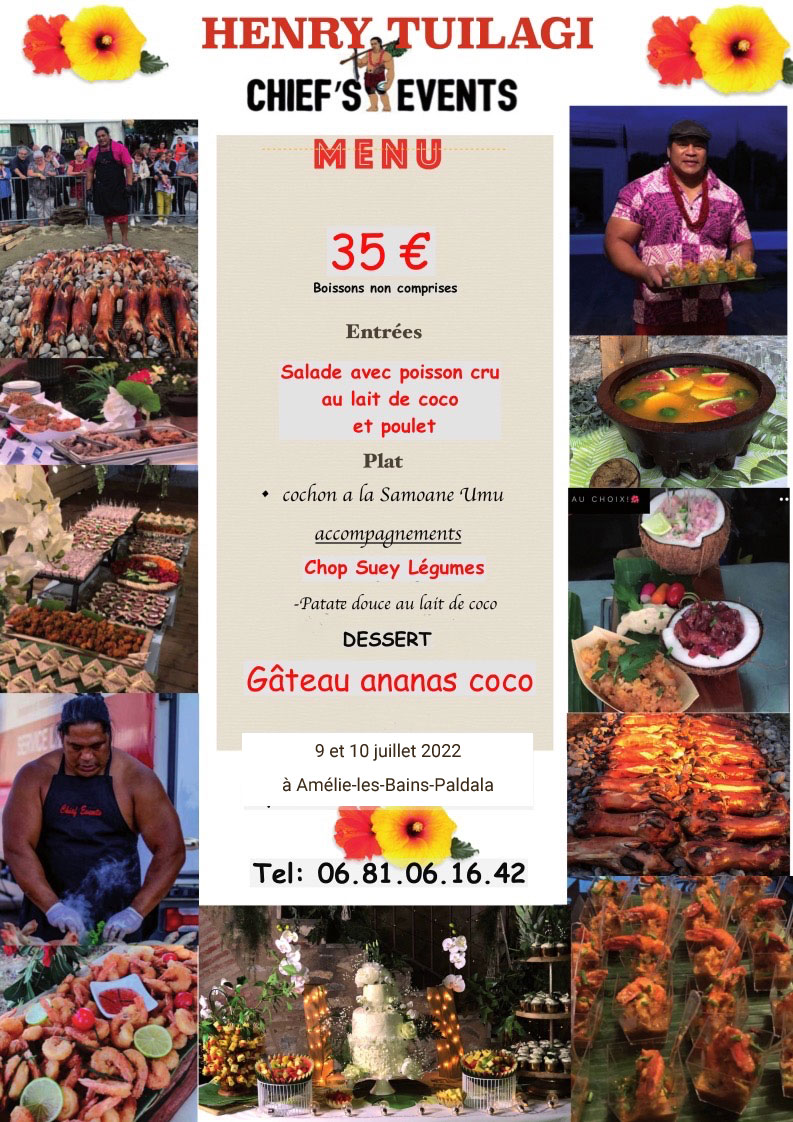 Plat : Cochon à la Samoane Umu Accompagnements : Chop Suey Légumes, Patate douce au lait de coco